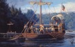 Setkání s Činuky na řece Columbii. Sacagawea tlumočí indiánským esperantem - posunkovou řečí; Ilustrace: Charles M. Russell