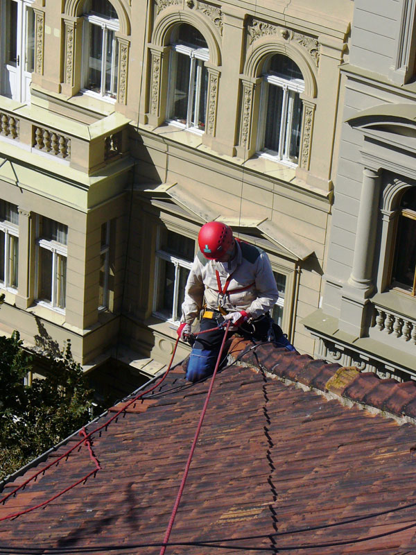 Provádíme veškeré práce ve výškách při údržbě a obnově fasád, střech, komínů. Většina prací ve výškách se provádí na těžko přístupných místech, ať už se jedná o práce stavební, tesařské, pokrývačské, klempířské nebo zámečnické. Provádíme instalace zábran proti ptactvu či protisněhových zábran a otopných systémů proti zamrzání okapů, montáže a demontáže konstrukcí a zařízení, instalace kabelových systémů apod.